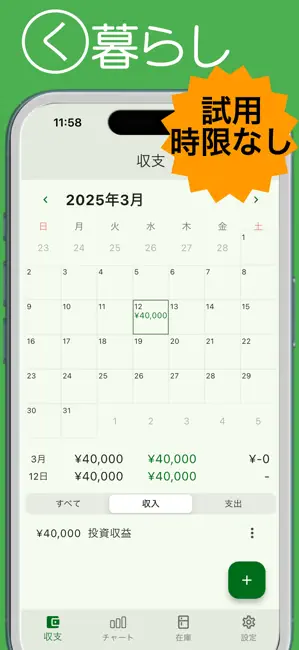 実際に使ってみて一番感動したのは、本当に広告が一つも出ないこと。家計簿アプリってどうしても広告が気になるものですが、Kakeiboは入力からグラフ確認まで完全にノーストレスでした。在庫管理機能も地味にすごくて、冷蔵庫の中身と家計を一緒に管理できるのは新しい体験です。レシート撮影での入力も手軽で、毎日の記録が苦にならないのがいいですね。シンプルだけど必要な機能はしっかり揃っていて、長く使い続けたくなるアプリです。(編集部)