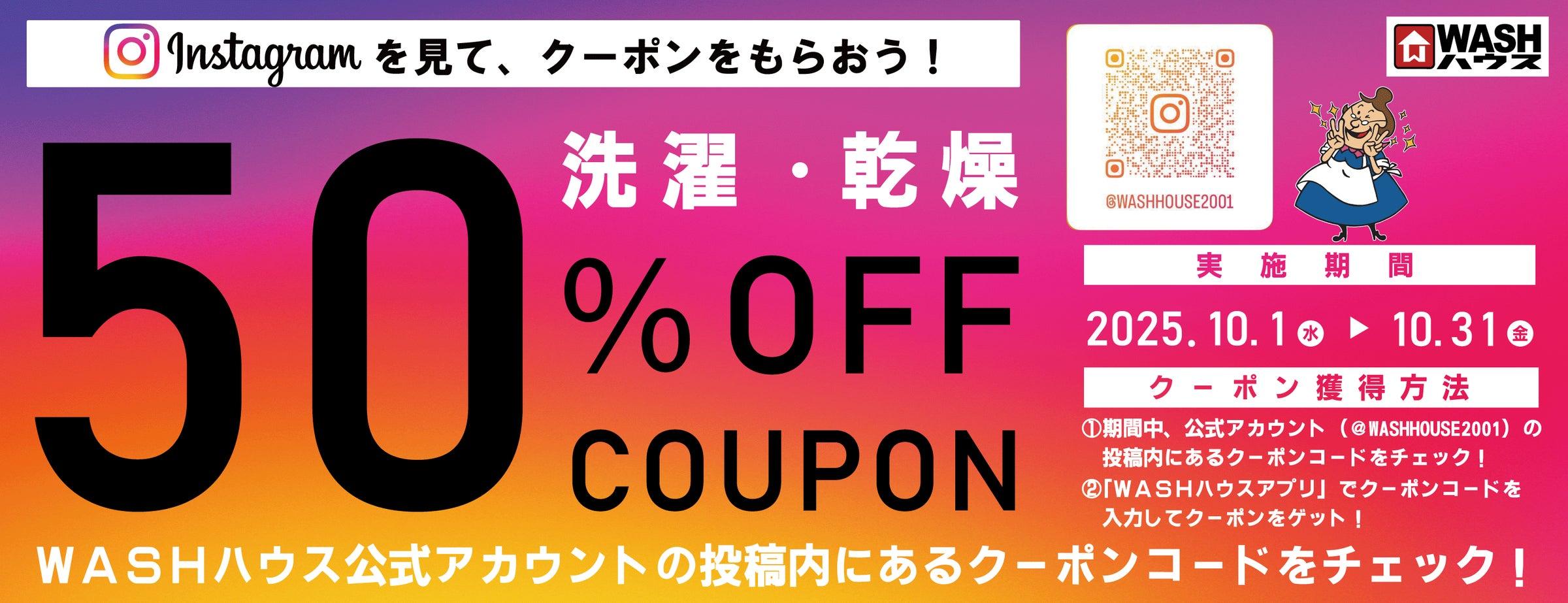WASHハウス株式会社は、2025年10月1日(水)から10月31日(金)までの期間、「Instagramを見てクーポンGETキャンペーン」を実施中です。