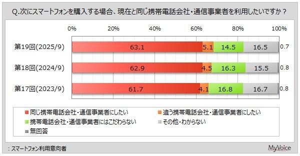 MyVoice:スマートフォン利用者の6割強が「同じ携帯電話会社・通信事業者」を希望