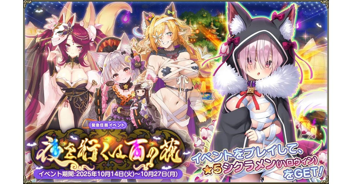 今回のアップデートでは、新イベント「夜を行くは百の花」の開催が目玉となっています。イベントでは、ハロウィンの仮装をした花騎士たちが登場し、プレイヤーはそれらの花騎士と一緒に新しい冒険に繰り出すことができます。