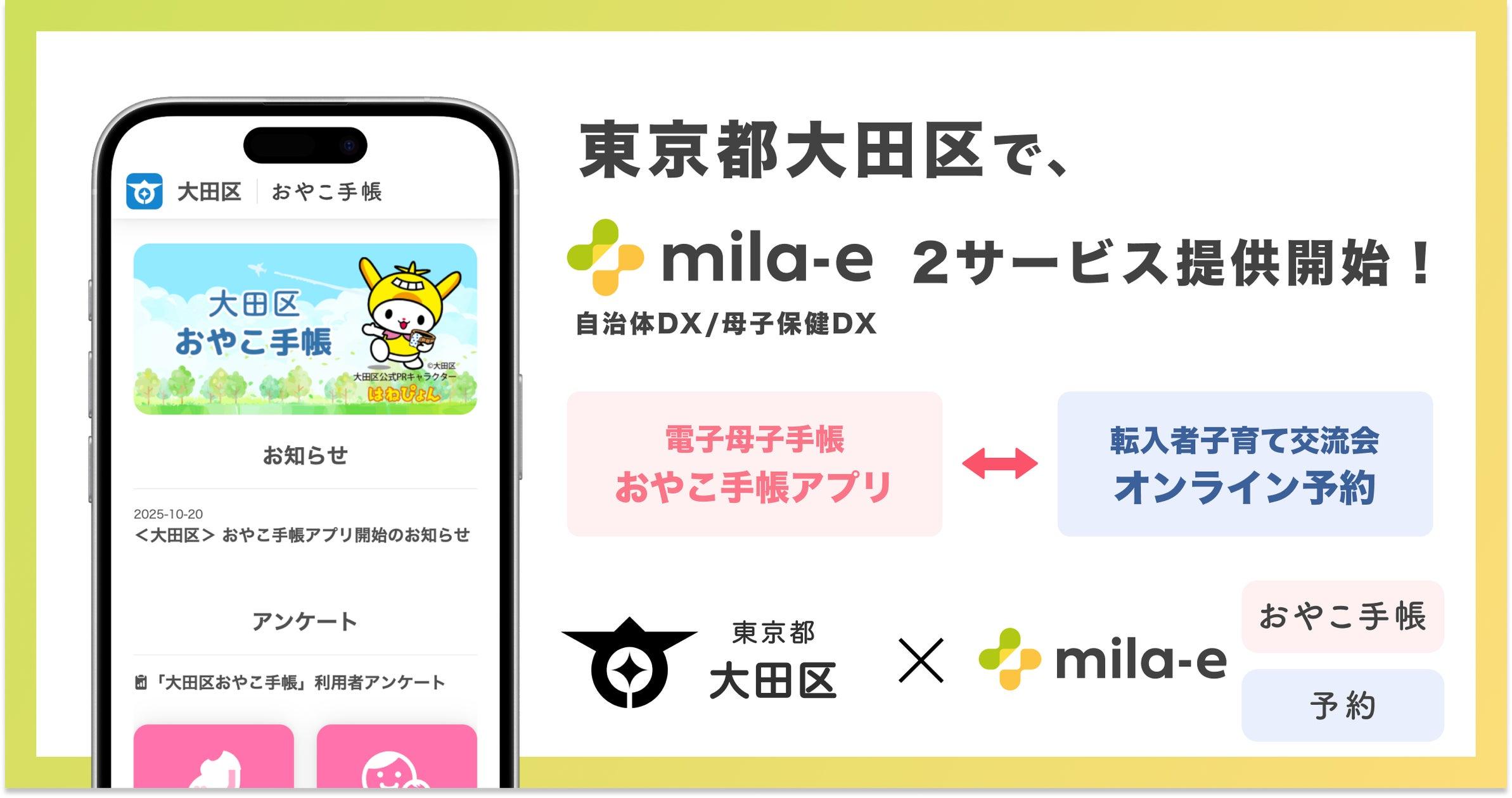 - 東京都大田区で母子保健DXサービスの「mila-e」が提供開始