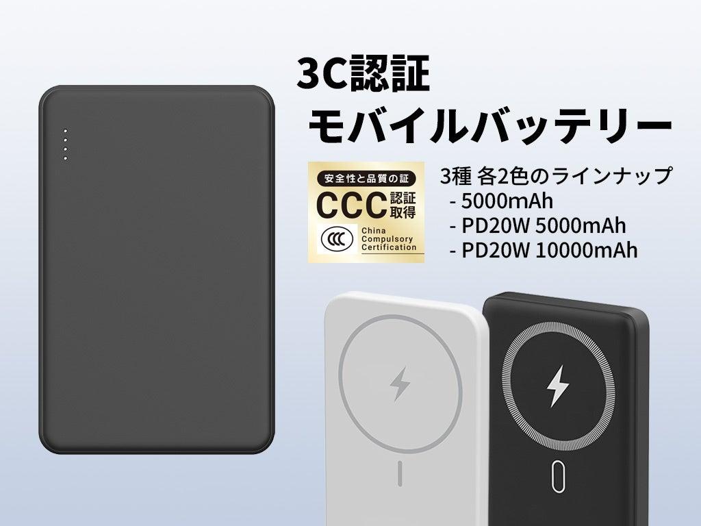 今回発売される3C認証モバイルバッテリーは、5000mAhと10000mAhの2つのサイズを、ホワイトとブラックの2色で展開しています。Type-Cを採用し、PD20W対応モデルも用意しているなど、幅広いニーズに対応しています。