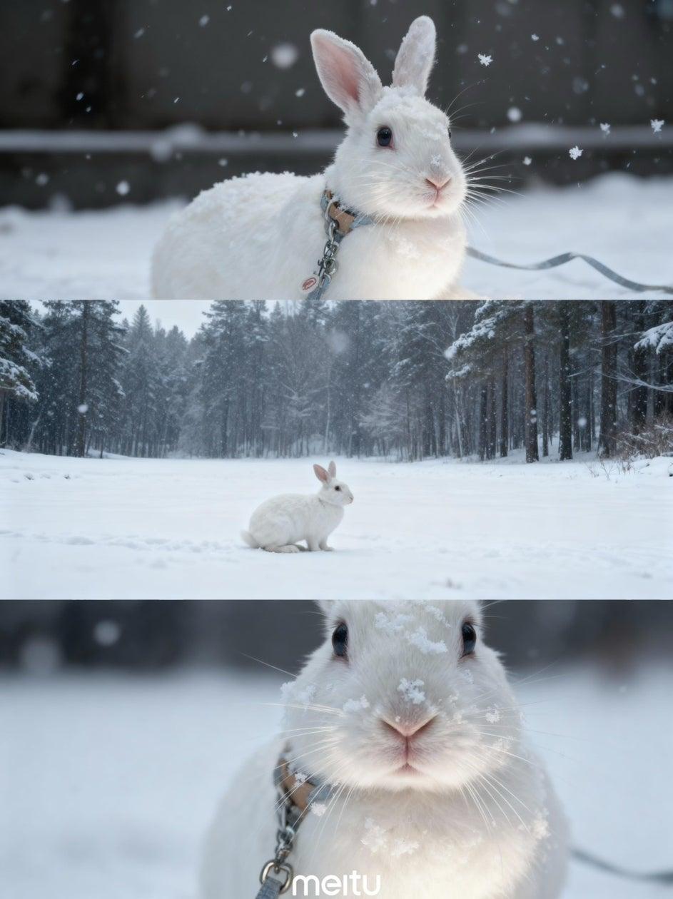雪加工の使い方は簡単で、Meituアプリのホーム画面から写真を選んでAI加工の「トレンド」機能を選ぶだけ。3つのパターンから好きなものを選んで、1分ほどで雪景色が完成します。