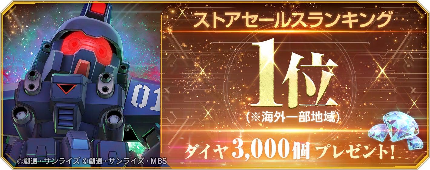 SDガンダム ジージェネレーション エターナル:海外一部地域でのストアセールスランキング1位達成を記念し、ダイヤ3,000個(ガシャ10回分)を全員へプレゼント!についてまとめました