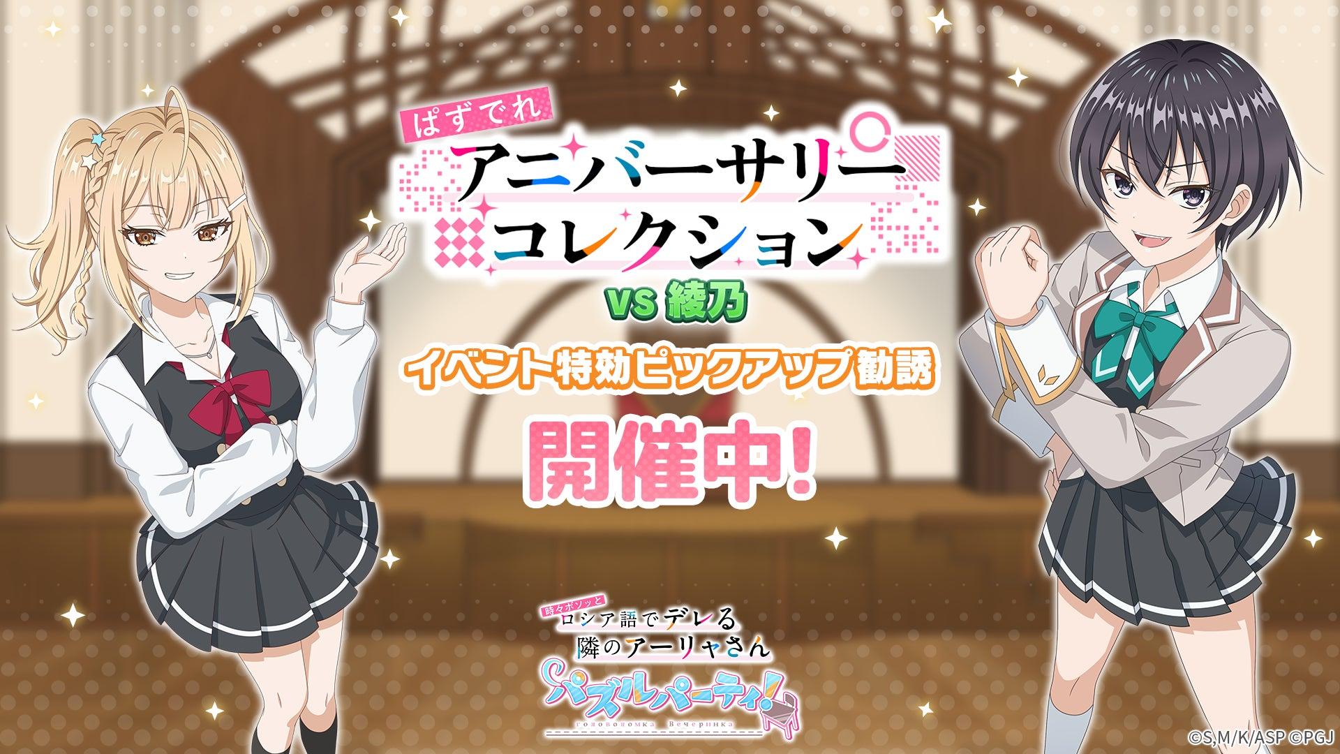 - 『時々ボソッとロシア語でデレる隣のアーリャさん パズルパーティ!』で1周年を記念し、期間限定のピックアップキャラクター「乃々亜」と「茅咲」が登場