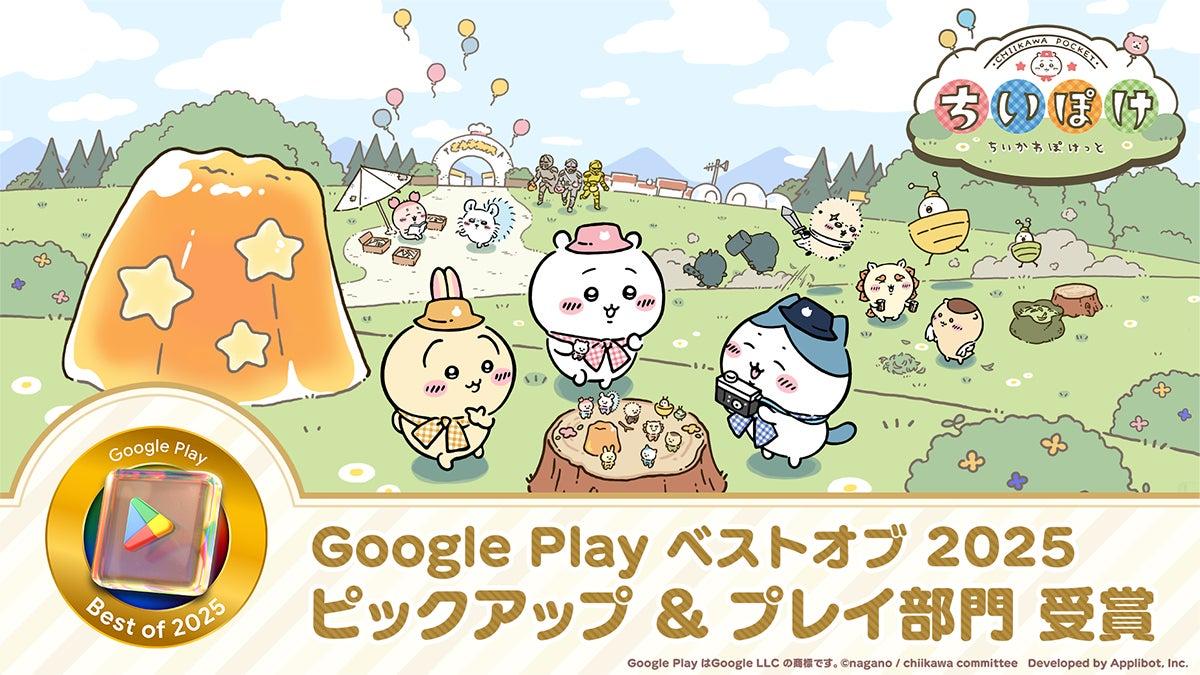- 「Google Play ベスト オブ 2025」は、Google Playが優れたアプリやゲームを選出する年間アワード。「ちいかわぽけっと」はシンプルで楽しいゲームとして「ピックアップ&プレイ部門」の大賞に選ばれた。