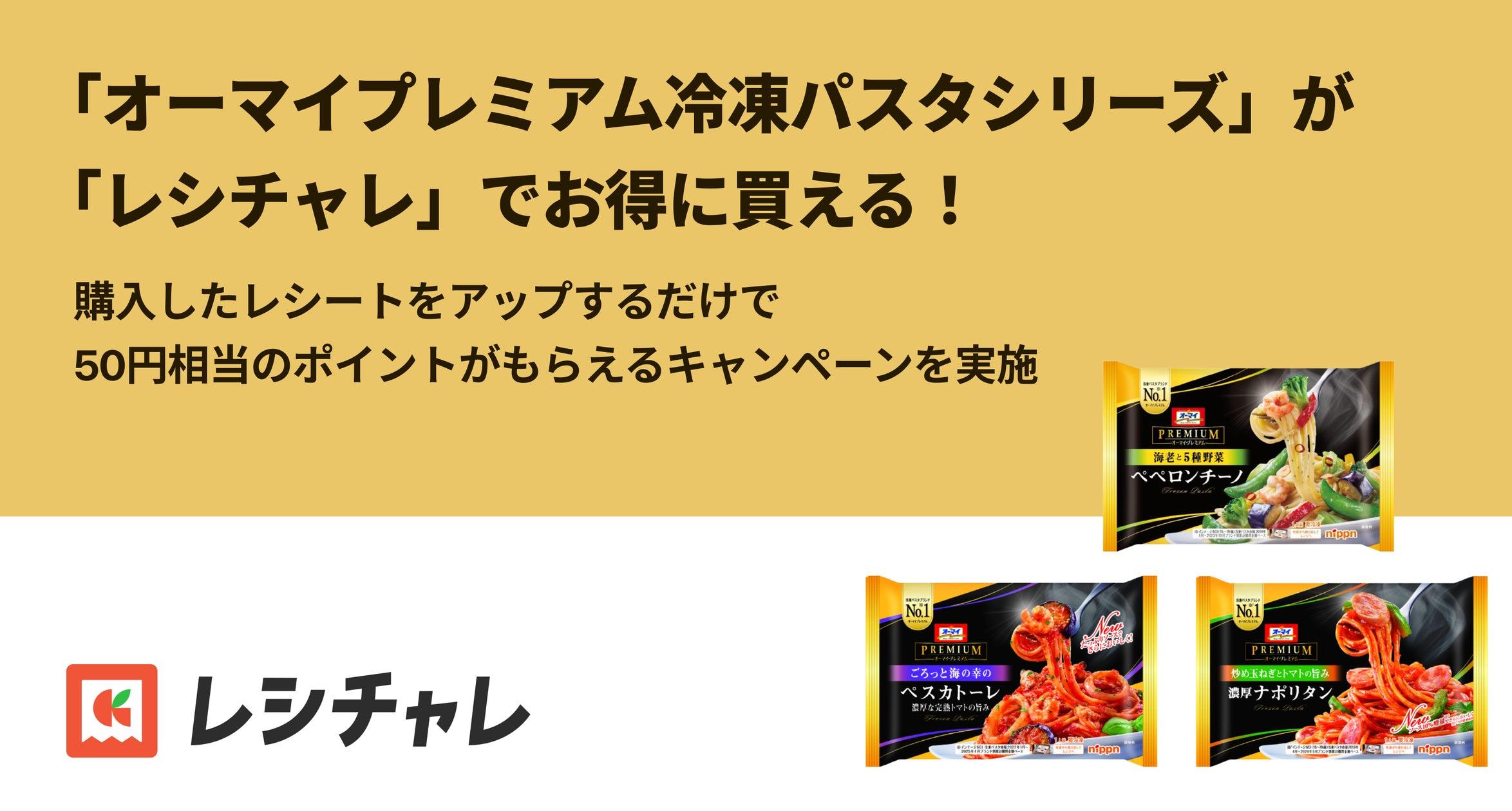 今回のキャンペーンは、手軽に本格的な冷凍パスタを楽しめる「オーマイプレミアムシリーズ」が、レシート買取りアプリ「レシチャレ」でお得に購入できるというものです。