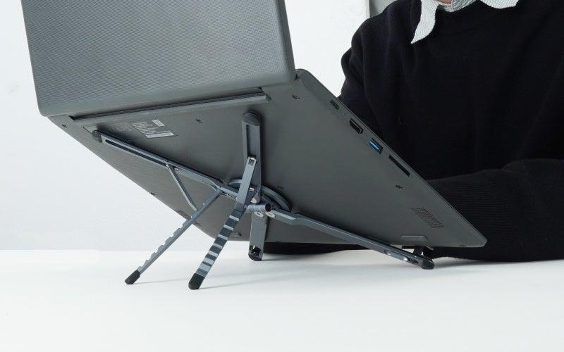 『1台4役「カチカチ折りたたみPCスタンド」』:ギミック好きの心をくすぐる”カチカチ”音と変形機構。