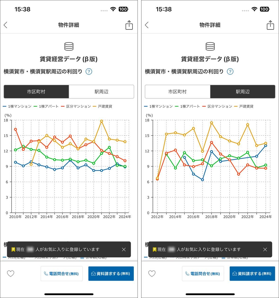これにより、投資家の方々は物件探しの際に、駅別の平均利回りに加え、市区町村別の平均利回り、人口・世帯数、空室率の推移などを総合的に把握して、より適切な投資判断ができるようになります。なお、この機能はiOS・Androidアプリで提供を開始しており、今冬にはPC版でも利用可能になる予定です。