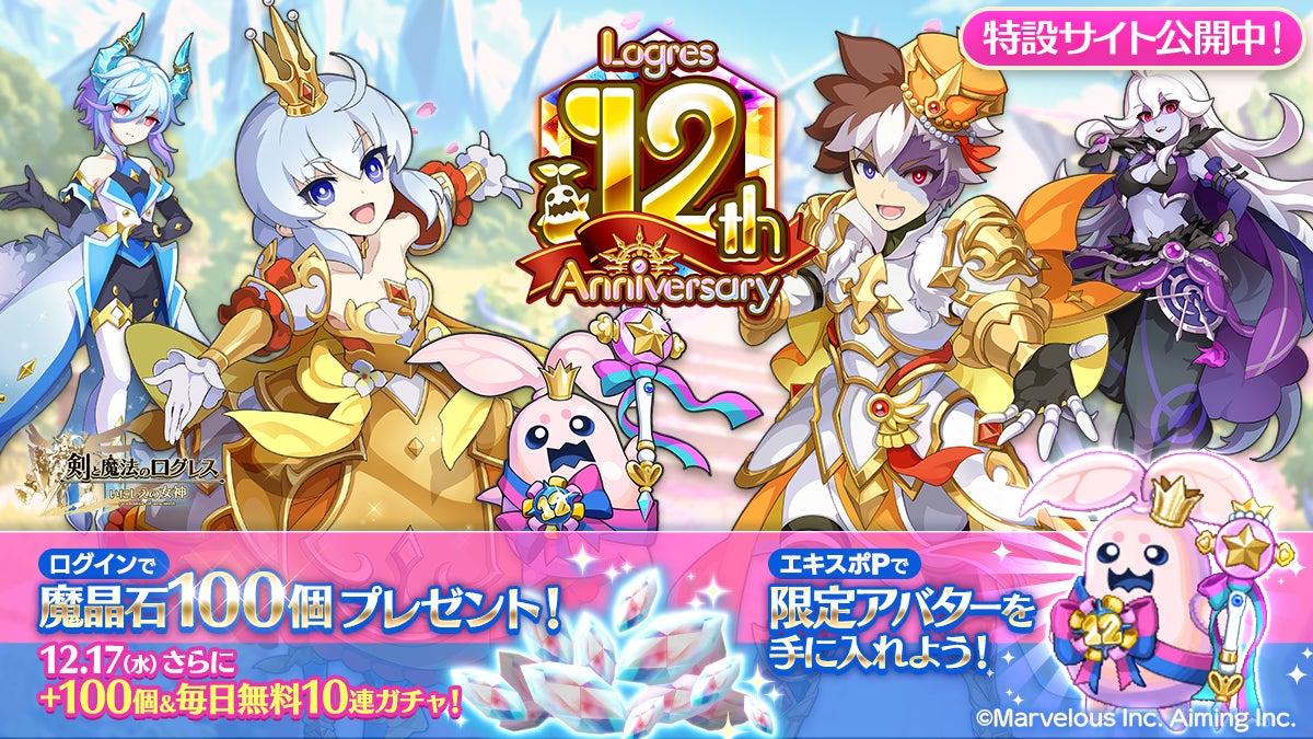 『剣と魔法のログレス いにしえの女神』は12周年を迎え、充実したイベントやキャンペーンが展開されています。ログインするだけで魔晶石100個がもらえるなど、ユーザー還元も手厚く、長年遊び続けているユーザーも新規ユーザーも楽しめるコンテンツが用意されています。