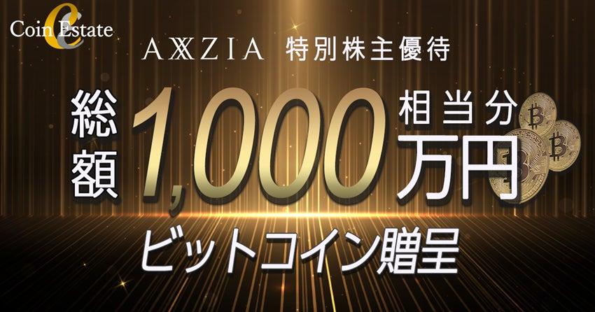 - 株式会社アクシージアの特別株主優待として、抽選で総額1,000万円相当分のビットコイン(BTC)を贈呈