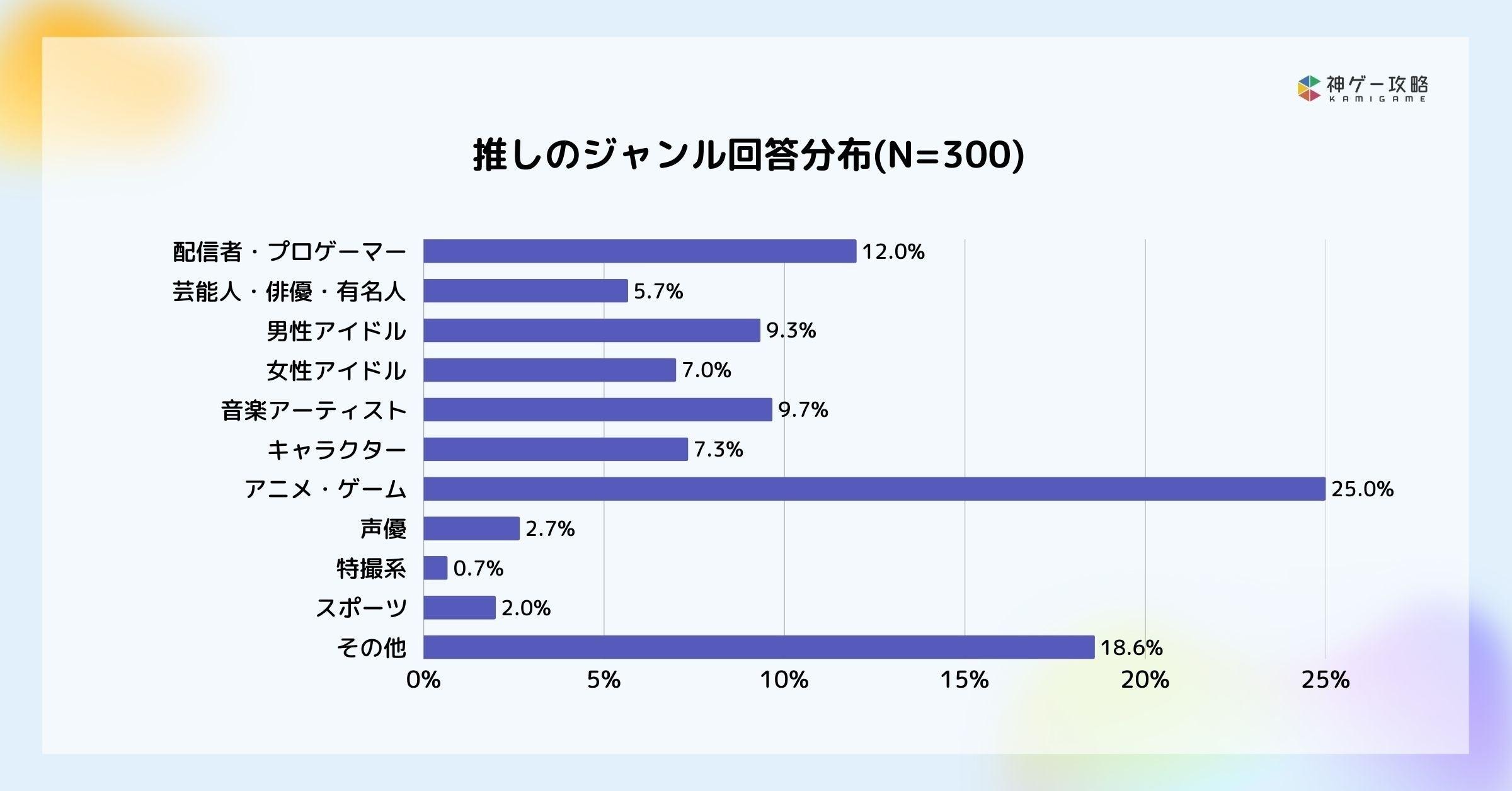 • 推しのジャンルはアニメ・マンガキャラやアイドル・アーティストが上位