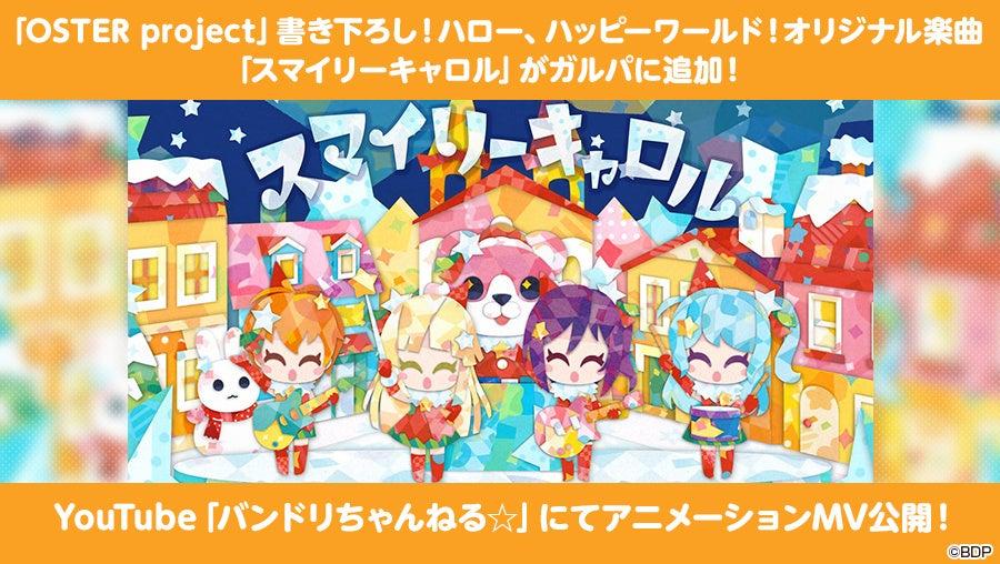 株式会社ブシロードは、スマートフォン向けゲーム「バンドリ! ガールズバンドパーティ!」(以下、ガルパ)にて、アーティストタイアップとして、OSTER projectさんからハロー、ハッピーワールド!への提供楽曲『スマイリーキャロル』をゲーム内に追加しました。