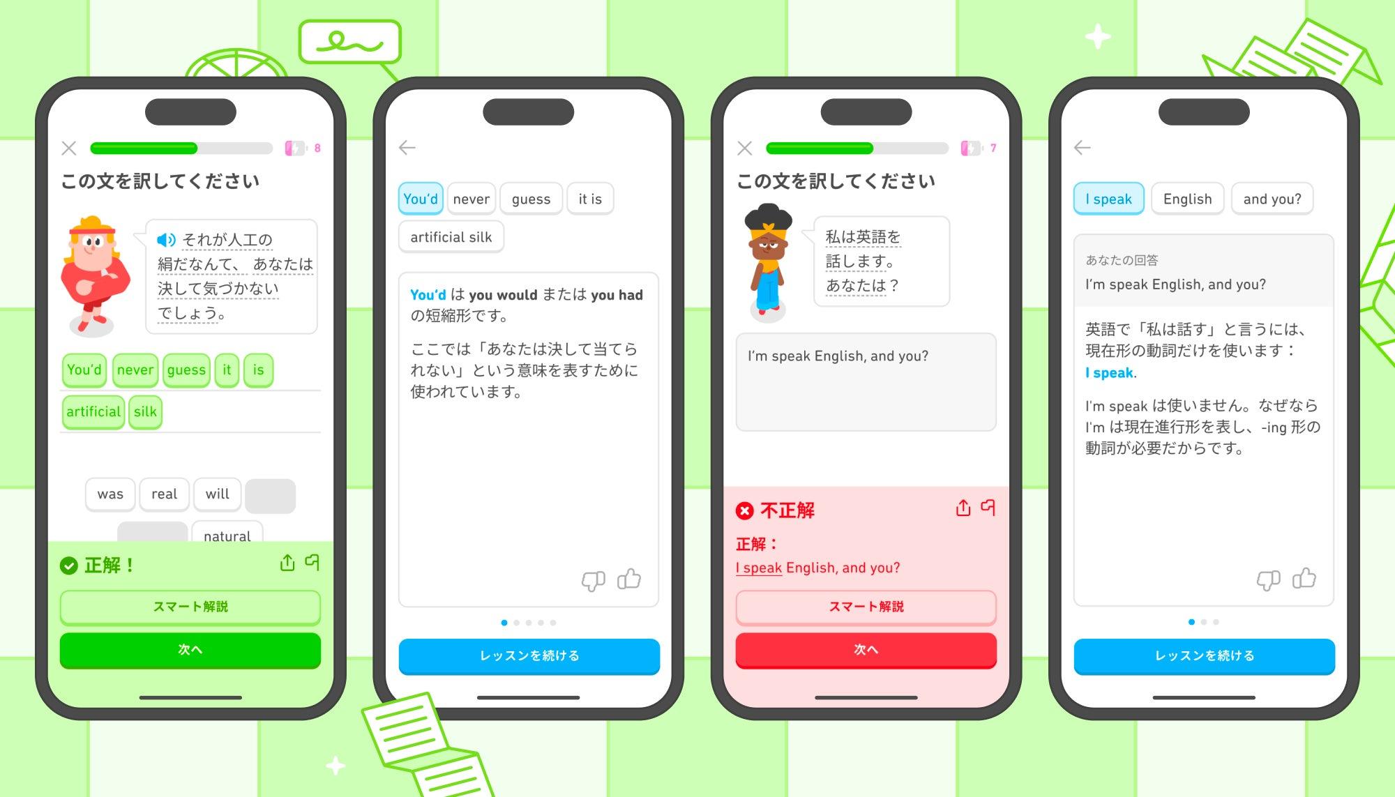 これまで本機能は、Duolingoの有料プラン「Duolingo Max」の機能として提供されてきましたが、今回のアップデートにより、世界中の学習者が、一つひとつのレッスンからより多くの学びを得られるよう支援していきます。この取り組みは、「誰もが利用できる、世界最高の教育を開発する」というDuolingoのミッション実現に向けた、さらなる一歩となります。