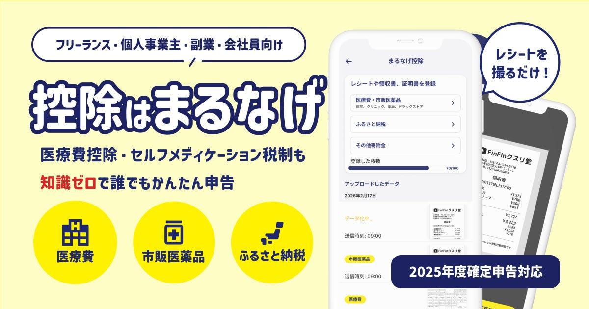 『FinFin』:業界初*、スマホで撮るだけ「まるなげ控除」機能が登場。フリーランス/個人事業主向けスマホ会計アプリが2025年分確定申告に対応についてまとめました
