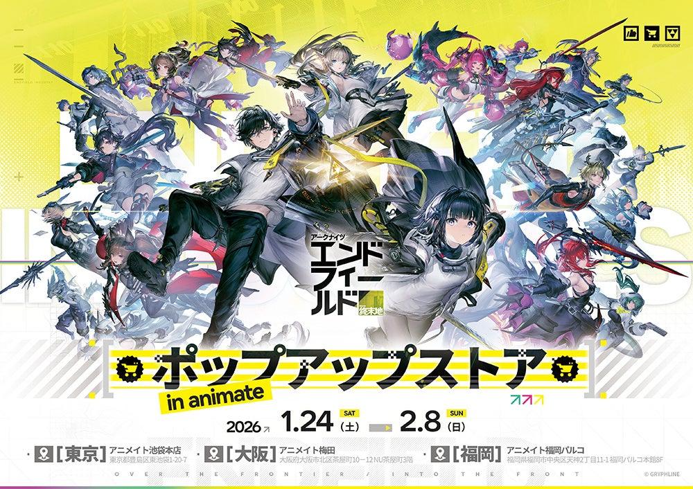 また同日より、アニメイト池袋本店、梅田、福岡パルコにて『アークナイツ:エンドフィールド』ポップアップストア in animateを開催。期間中、対象商品を2,200円(税込)以上購入するとポストカードを、8,800円(税込)以上購入するとminiアクリルスタンドをプレゼントします。