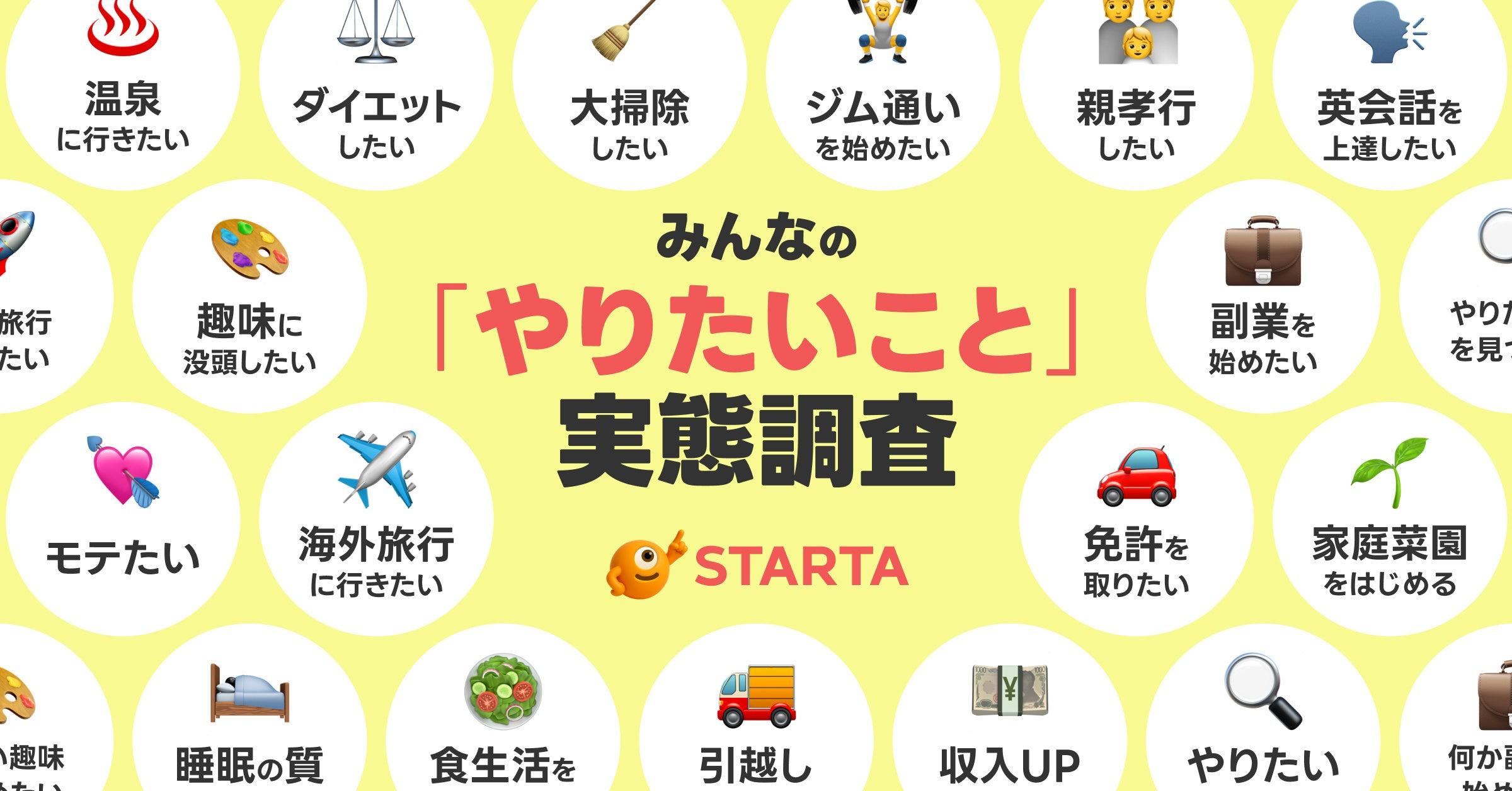 「時間がない」「お金がかかる」といった現実的な問題が大きな障壁となっているようですが、そうした課題を乗り越えるための支援が必要だと感じました。目標達成をサポートするアプリ「STARTA」は、そういった人々の背中を後押しする良いツールになるのではないでしょうか。