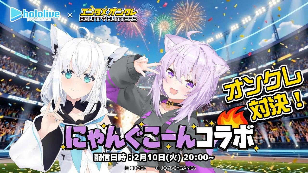 JOYBOY GAMES – FZCOが提供する、世界初の配信者連動型オンラインクレーンゲーム「バウンティハンターズ」は、「ホロライブ」に所属する人気VTuber『白上フブキ』、『猫又おかゆ』とのコラボ配信イベントを2026年2月10日(火)20時より開催する。