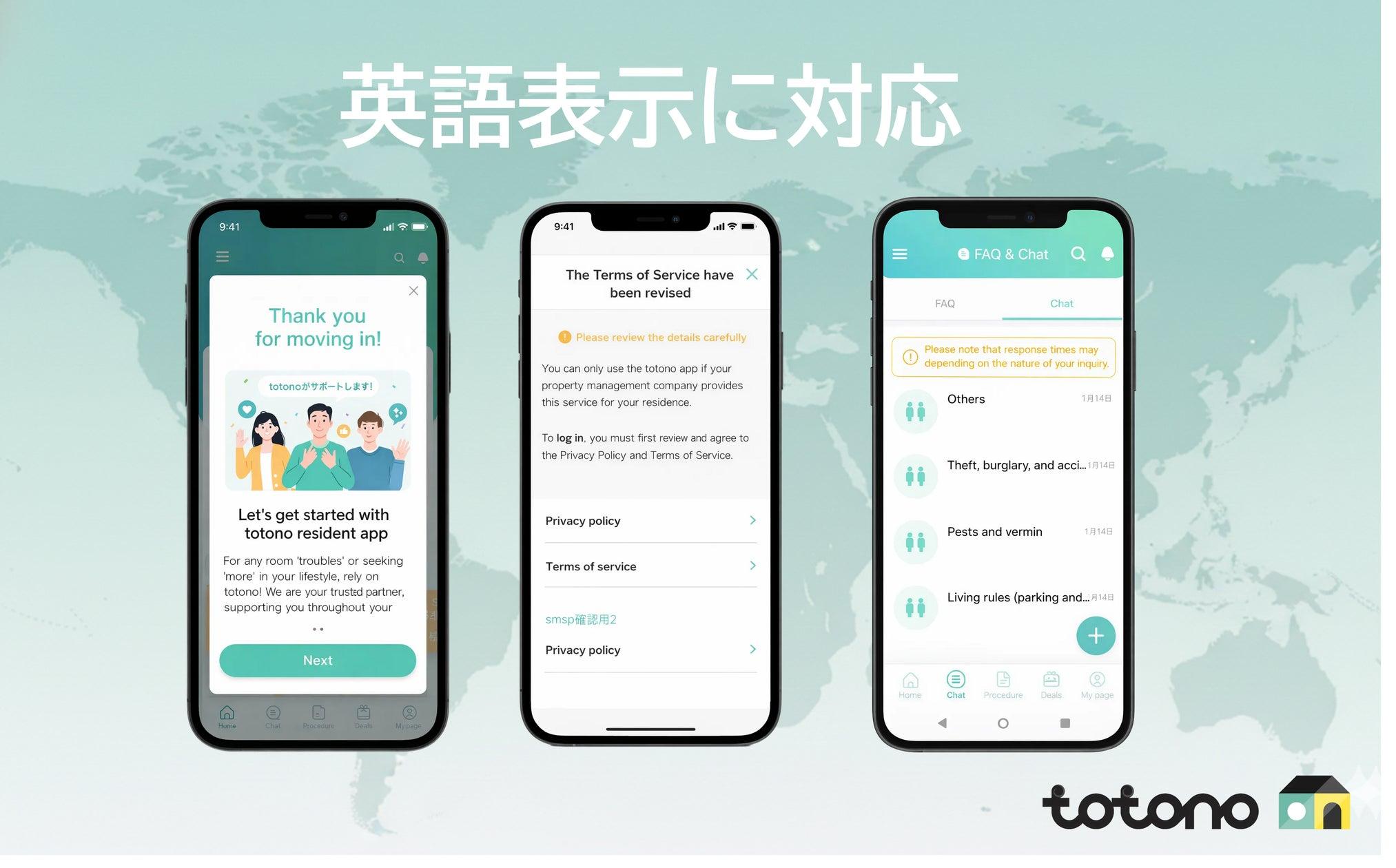 totono:入居者アプリ「totono」、英語対応を開始