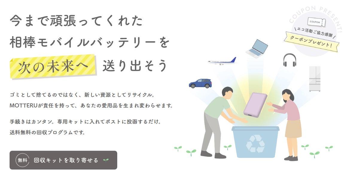 MOTTERU:「使い終わった相棒を、未来のエネルギーへ。」 MOTTERU、回収率99%※の技術を用いたモバイルバッテリー回収プログラムを開始についてまとめました