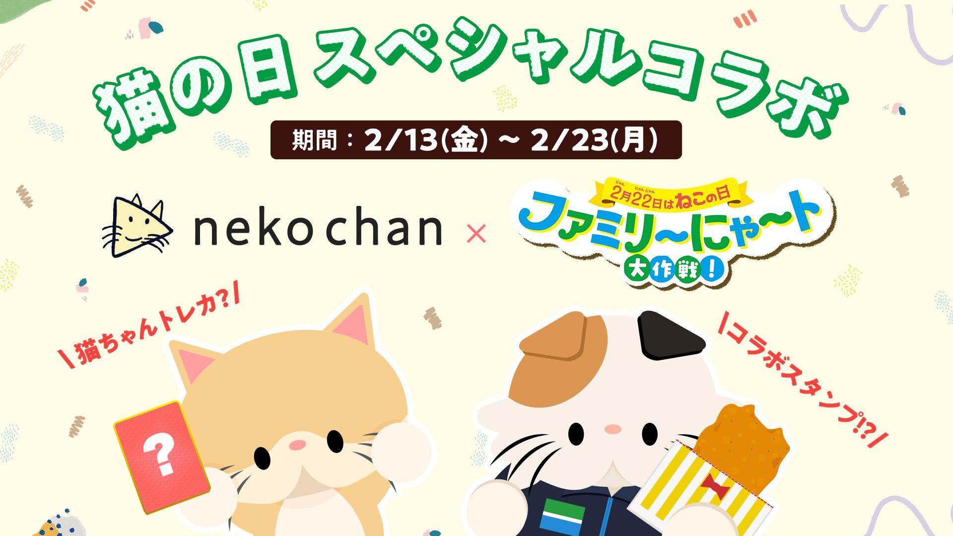 キャンペーン期間中には、nekochanアプリ内にて「ファミリ~にゃ~ト大作戦!」コラボスタンプが登場する。ファミリーマートの制服を身にまとった可愛い猫キャラクターたちの無料スタンプとなっている。