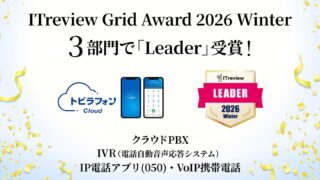 ニュースの要約 トビラフォン Cloudが「ITreview Grid Award 2026 Winter」のクラウドPBX部門、IVR部門、IP電話アプリ部門の3部門で「Leader」を受賞 「トビラフォン Cloud」が「I...