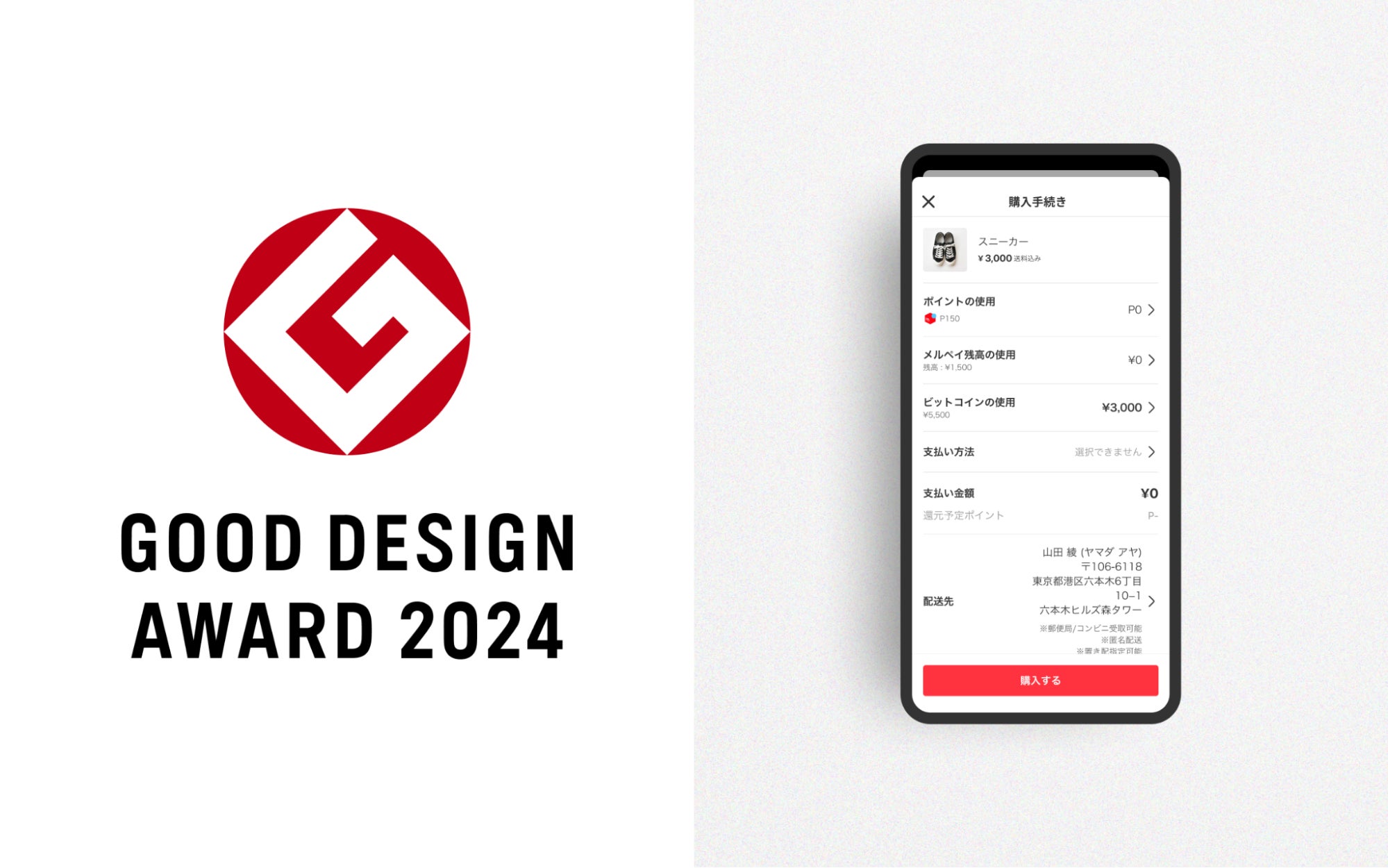 同サービスはメルカリアプリ内でユーザーが所有するビットコインを商品の購入時に支払い手段として選択可能。普段使いの買い物で暗号資産が利用できることで、「持つ」と「使う」を一つのアプリで完結させ、新たな消費行動を生み出しています。グッドデザイン賞の審査委員からも「ビットコインを日常的な決済手段として利用できる点がユニークで好感が持てる」とのコメントが寄せられました。