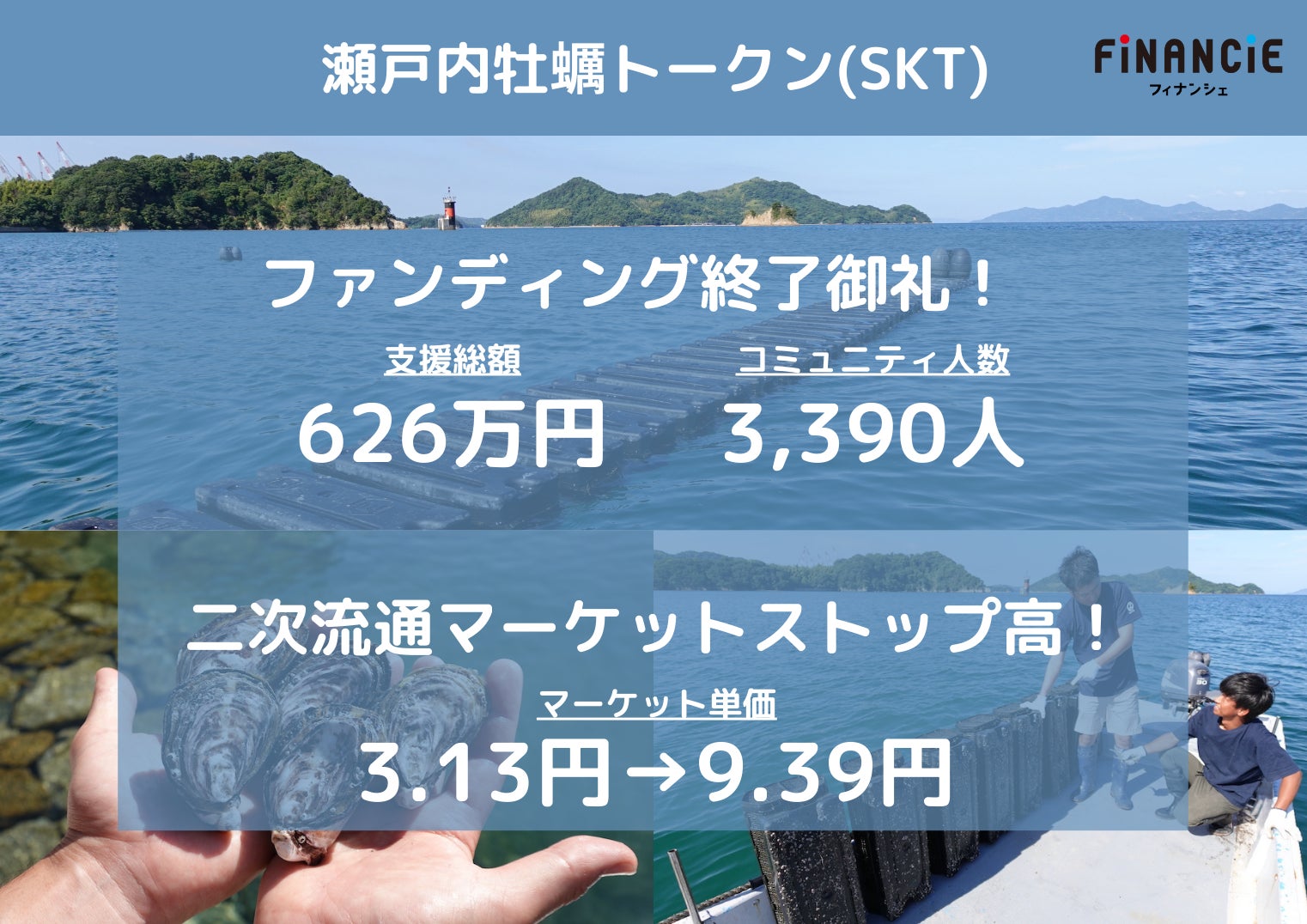 【株式会社フィナンシェ】 【トークン価格3倍に!】漁業3.0に挑む漁師YouTuberまさと「瀬戸内牡蠣トークン(SKT)」のFiNANCiEでのファンディングが昨日終了し、初日マーケット取引でストップ高を記録! by PR TIMESをまとめました