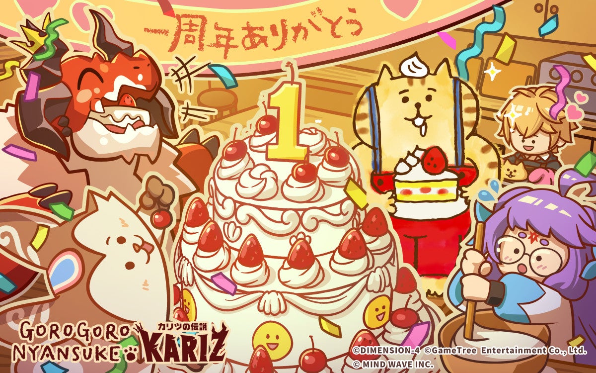 人気の竜と暮らす冒険RPG『KARIZ – カリツの伝説 -』が、アプリ配信開始一周年を迎えました。これを記念して、11月6日より大人気キャラクター「ごろごろにゃんすけ」とのコラボイベントがスタート!新職業の実装や豪華イベントも目白押しで、プレイヤーには見逃せない期間となっています。