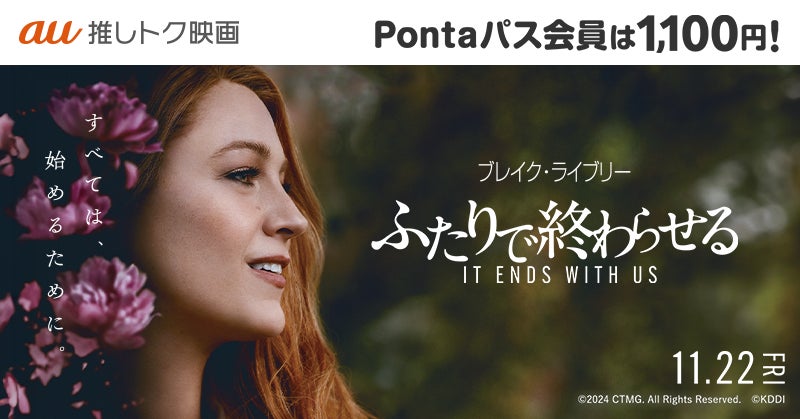 KDDI株式会社が提供する「Pontaパス」会員限定で、注目の映画『ふたりで終わらせる/IT ENDS WITH US』が「au推しトク映画」のラインナップに加わりました。公開日は2024年11月22日。Pontaパス会員は土日も平日も関係なく、一般料金1,100円で鑑賞できる絶好のチャンスです!