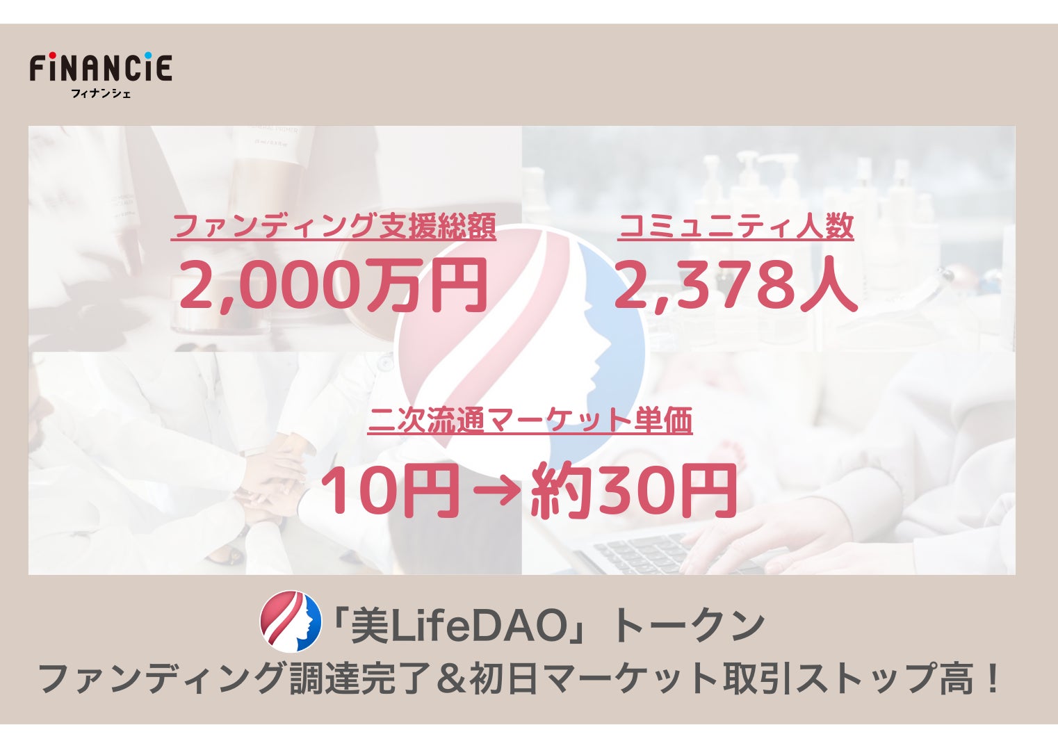 【株式会社フィナンシェ】 【トークン取引単価3倍に!】美容健康xインフルエンサーxWeb3「美LifeDAO」のFiNANCiEでのファンディング調達完了&初日マーケット取引もストップ高を記録! by PR TIMESをまとめました