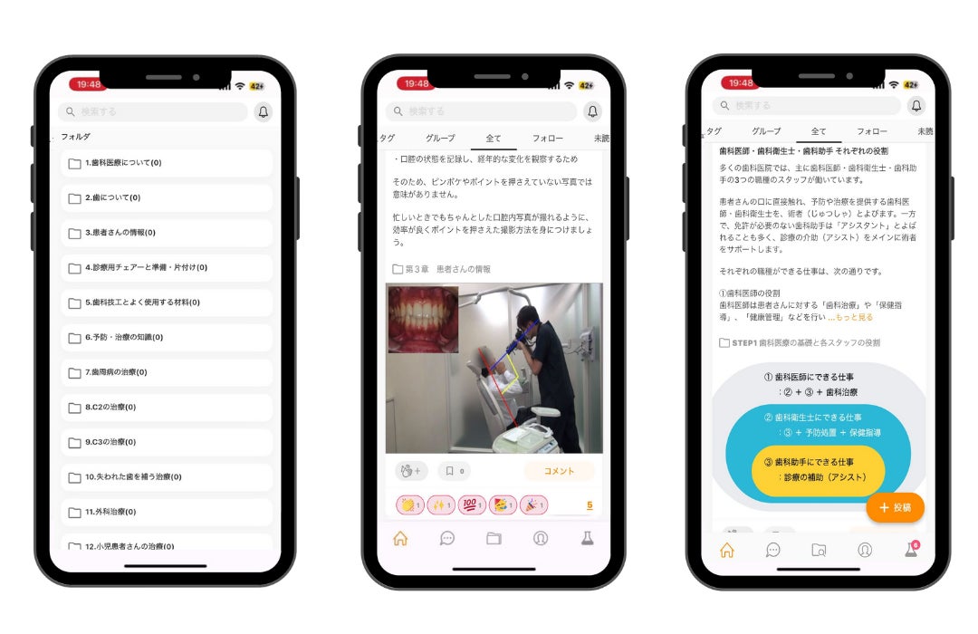 第一弾として「歯科医療について」のテーマを提供し、歯科業界で働くさまざまな役割をわかりやすく解説。今後は「歯について」や「予防・治療の知識」「歯周病の治療」など、実践に役立つ12カテゴリーのコンテンツを順次拡充予定です。