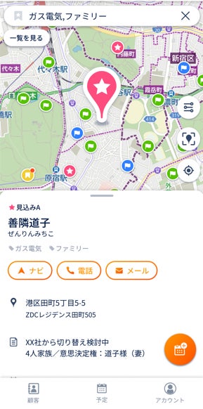- 顧客検索と地図上のマッピング:任意の条件で顧客を検索し、効率の良い訪問ルート計画をサポート。