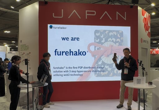 そんな激戦の中、Casley Deep Innovationsはクラウドに依存しない独自のデータストレージ技術「furehako(R)」を披露。これは、重要機密データを多数の意味のないバイナリ断片に分割し、それぞれを暗号化、分散し保存、そして元データは削除することで、サイバー攻撃を受けても復元が極めて難しいセキュアな保存システムです。