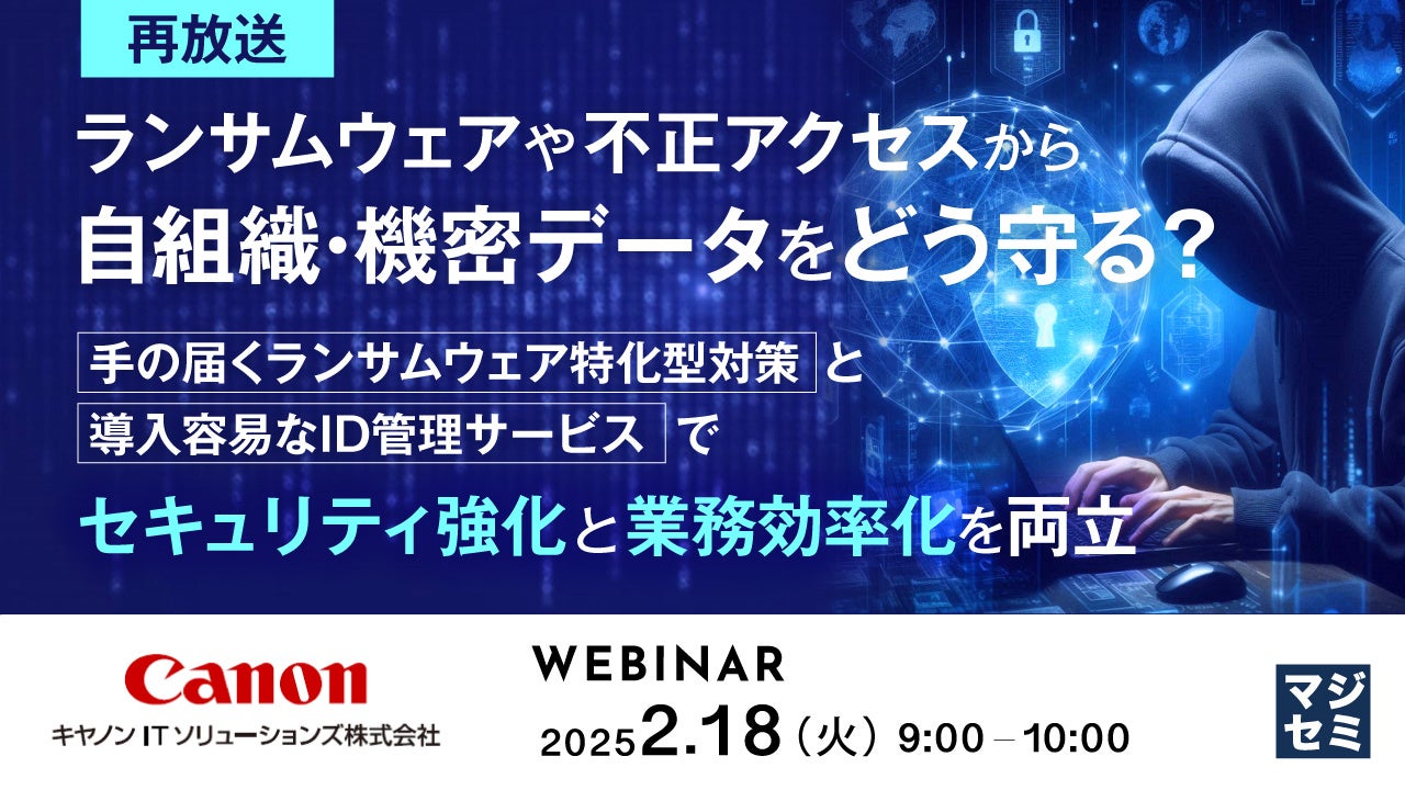 マジセミ株式会社が主催する人気セキュリティウェビナー「【再放送】ランサムウェアや不正アクセスから自組織・機密データをどう守る?」が、このたび再度開催されます。サイバー攻撃の脅威が高まる中、企業や組織の情報セキュリティ強化に関心のある方におすすめの内容です。
