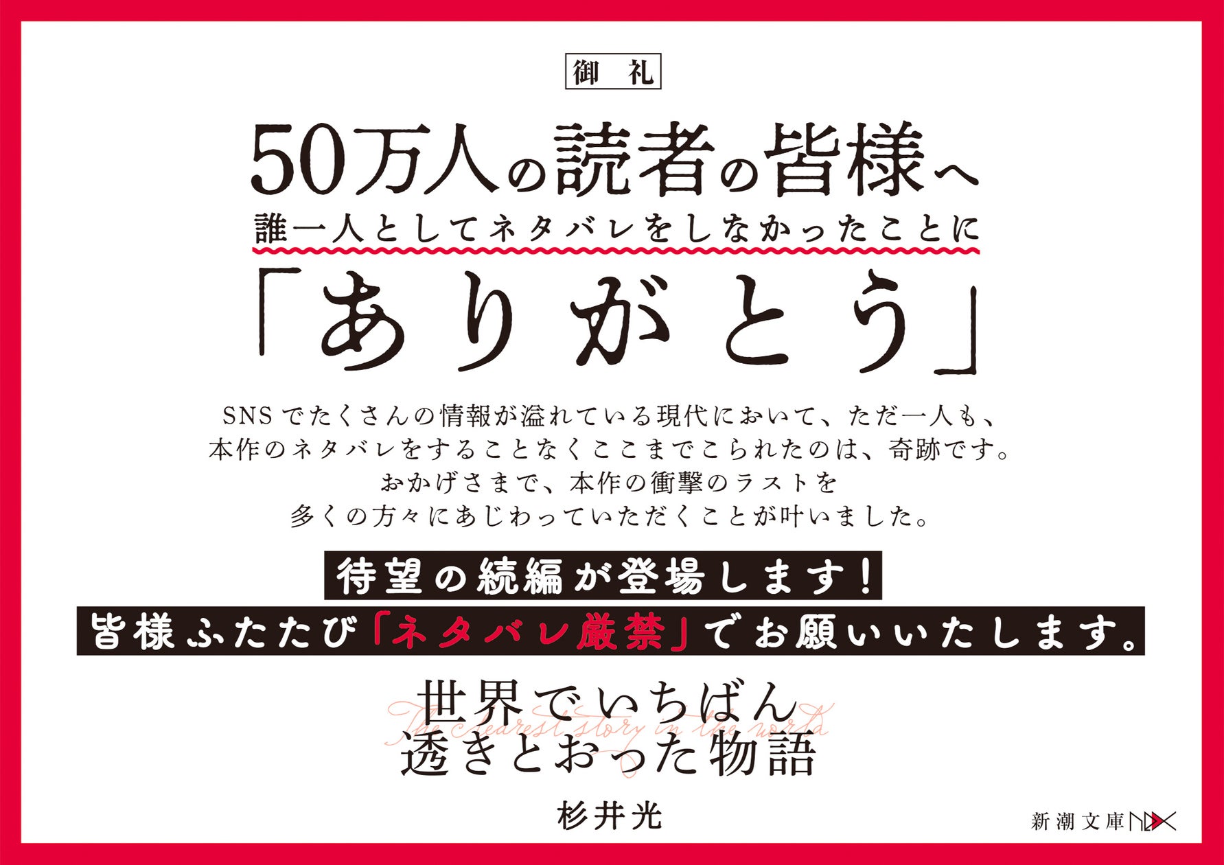 【株式会社新潮社】 【本日発売】超話題作、まさかの続編!? 杉井光『世界でいちばん透きとおった物語2』(新潮文庫)1月29日発売! by PR TIMESをまとめました