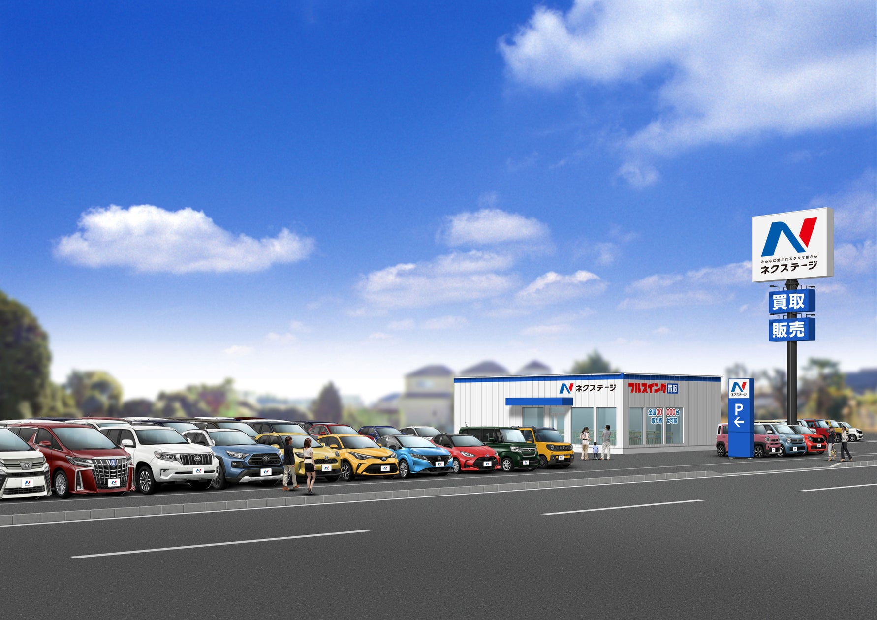 ネクステージは新車・中古車販売のほか、整備、保険代理、買取、カーコーティングなど自動車関連の幅広いサービスを展開。地域密着型の「みんなに愛されるクルマ屋さん」を目指し、お客様の安心・安全なカーライフを支援します。