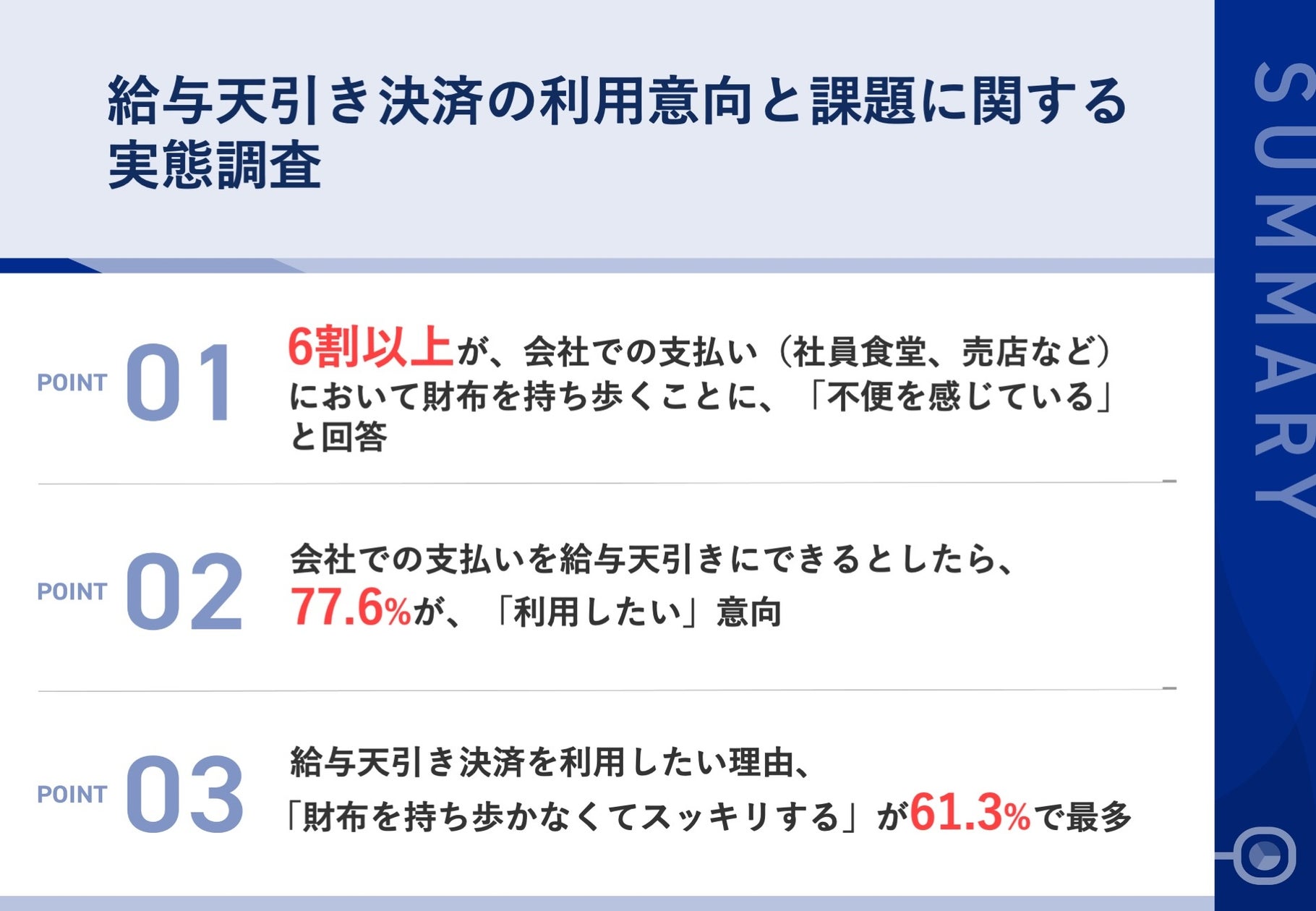 - 給与天引きによる社内決済の利用意向が77.6%に上る