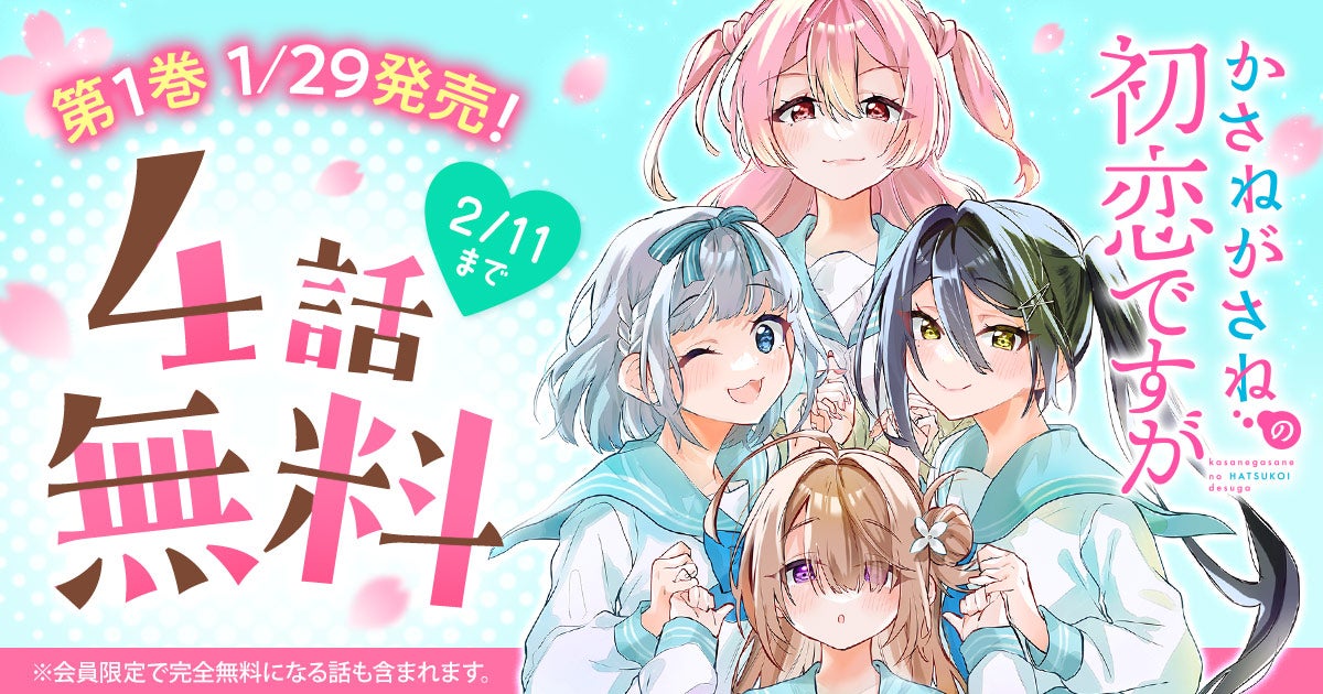 「かさねがさねの初恋ですが」は、香川県の美しい自然を背景にしながら、幼馴染とその仲間たちの複雑な恋模様をフレッシュに描いたラブコメディーです。第1巻発売に合わせて実施されているヤングアニマルWebの無料キャンペーンは、気軽に作品の魅力を体験できる絶好のチャンス。恋と友情が入り混じる青春ストーリーを楽しみたい方は、2月11日までにぜひチェックしましょう。