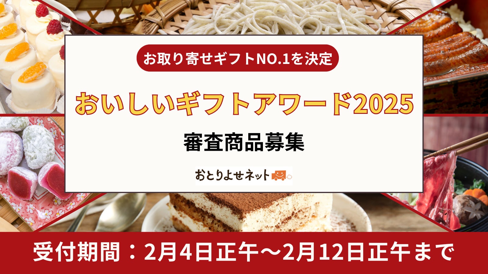 日本最大級のお取り寄せ情報サイト「おとりよせネット」が、新たに「おいしいギフトアワード2025」の審査商品の公募を2月4日正午から開始します。全国のオンラインショップから自慢のギフト商品を募集し、3月7日の試食審査会を経て、4月17日に結果を発表予定です。