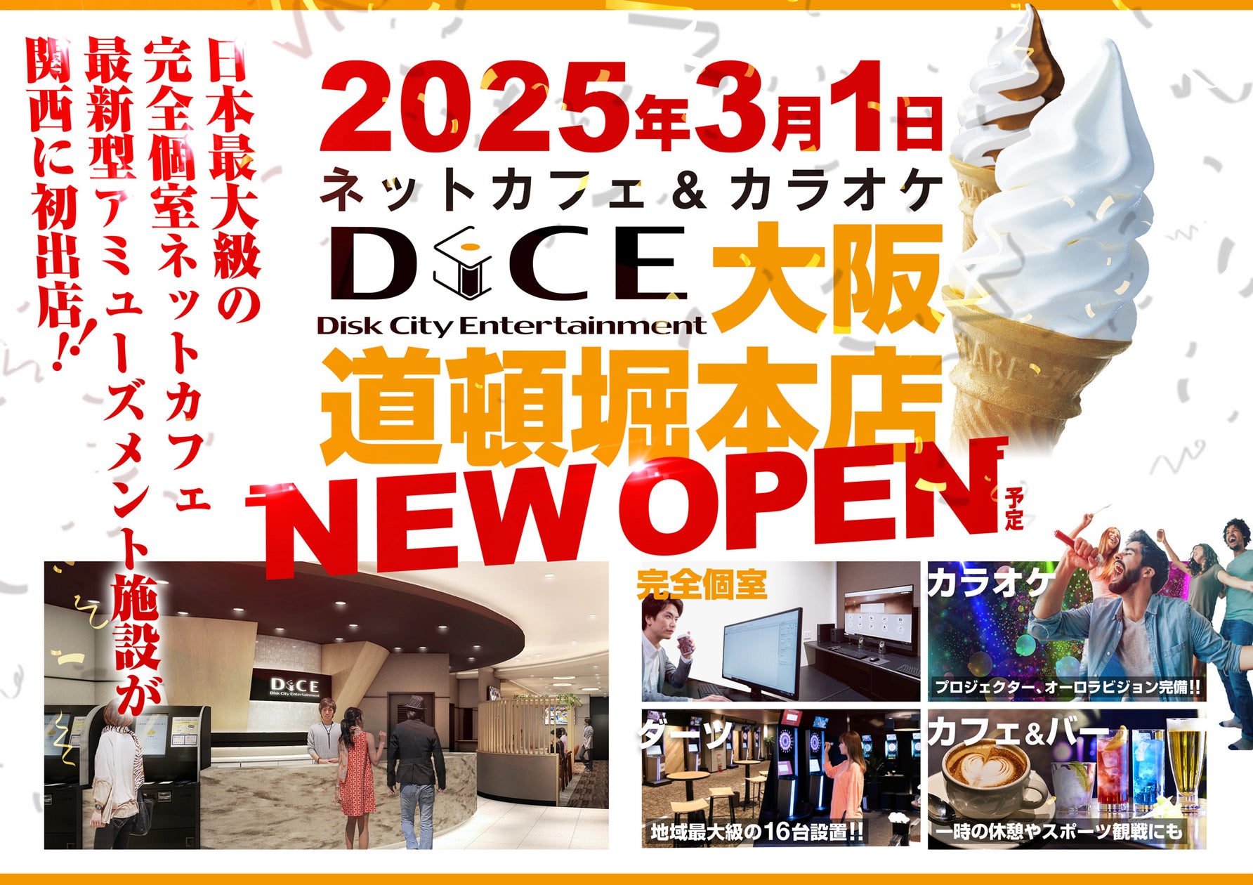 株式会社ディスクシティエンタテインメントが運営するインターネットカフェ「DiCE」は、これまで北海道・宮城・埼玉・東京・神奈川の計22店舗を展開してきました。今回、初めて関西エリアに進出し、大阪・道頓堀に過去最大規模の店舗をオープンします。