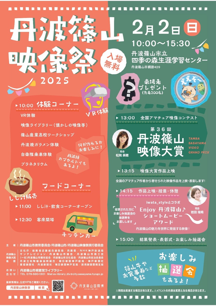また、午後からは「第36回丹波篠山映像大賞」に加えて、一般応募作品による「Enjoy 丹波篠山♪ ショートムービーアワード」の上映も実施。1日を通してさまざまな映像作品に触れることができます。