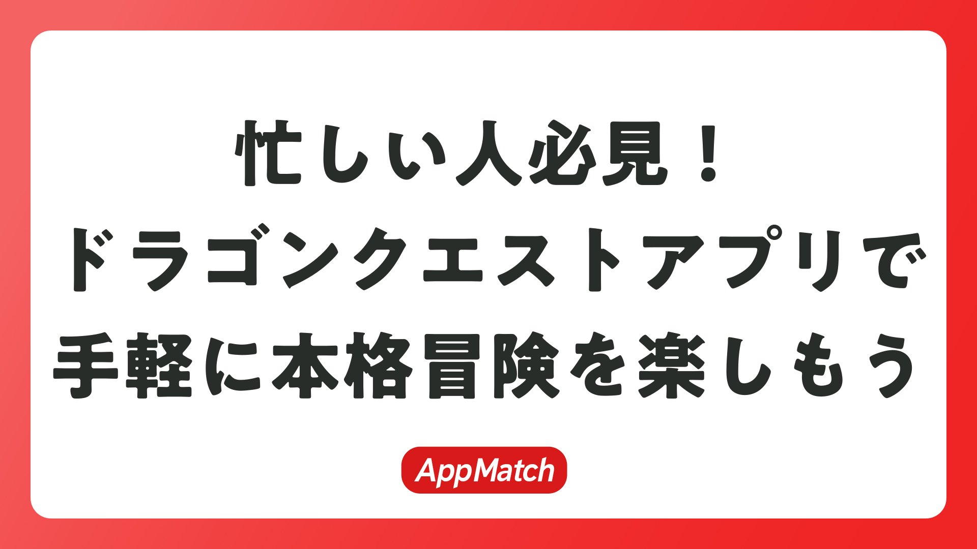 自分に合ったアプリを選んで、今日からドラクエの冒険をスタート。隙間時間が増え、日常がワクワクに変わります!