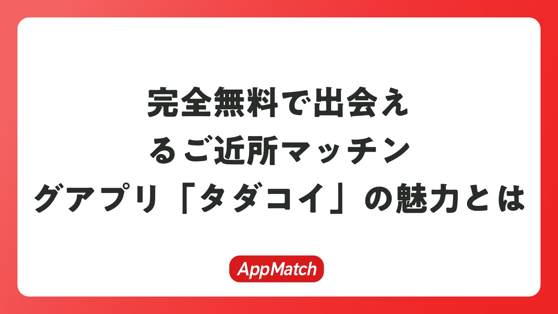 完全無料で出会えるご近所マッチングアプリ「タダコイ」の魅力とはをまとめました