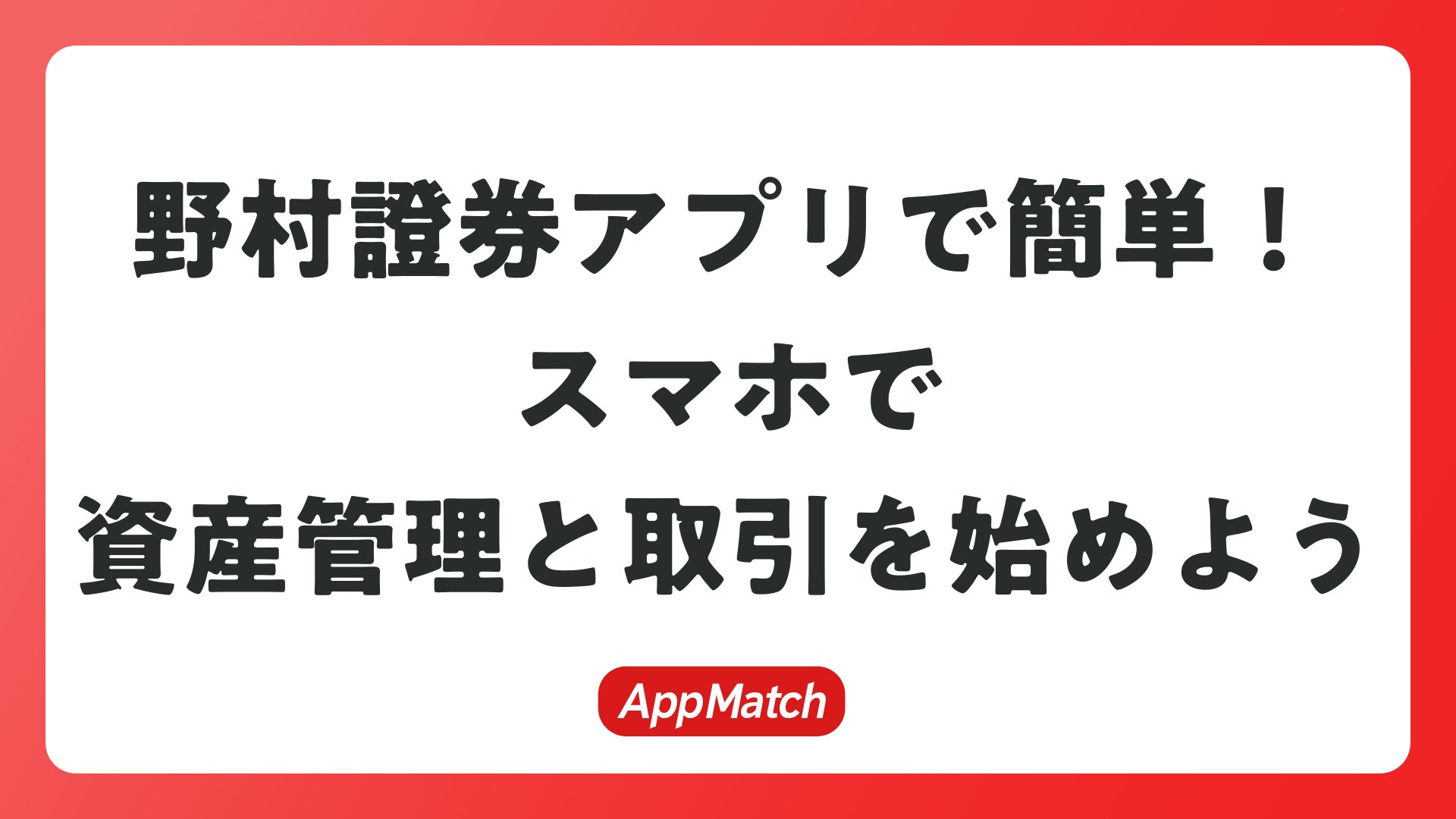 アプリのダウンロードは簡単で、即時利用可能。資産管理・取引・情報収集を1台でカバーし、快適な運用を実現。ポジティブな投資ライフを野村證券アプリでスタートしてください。