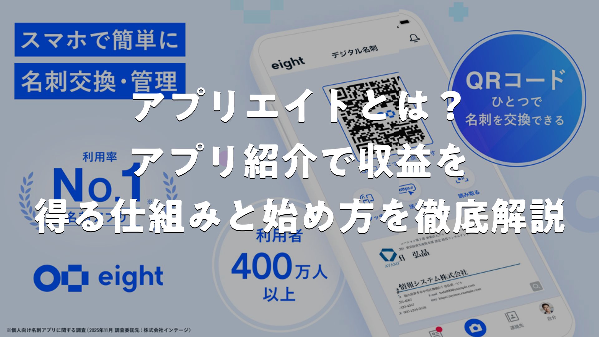 アプリエイトは、アプリを紹介してダウンロードしてもらうだけで報酬が発生する、初心者にも始めやすい収益モデルです。無料ダウンロードで成果となる案件が多いため、読者側のハードルが低く、成約率を高めやすいのが魅力です。始め方もシンプルで、ブログやSNSを用意してASPに登録し、実際に使ったアプリをレビューするだけ。名刺管理アプリ「Eight」のように高評価で利用者の多いアプリを丁寧に紹介すれば、読者に喜ばれながら収益も得られます。大切なのは、読者目線で本当に役立つ情報を提供し続けること。地道にコンテンツを積み重ねれば、アプリエイトはあなたの強力な収入源になるはずです。