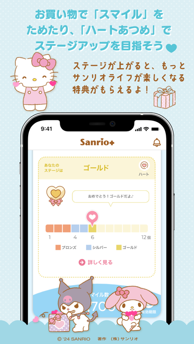 さらにSanrio+限定のゲームやクイズ、毎月もらえるオリジナル壁紙など、アプリ内だけで楽しめるコンテンツも豊富。Sanrio+ハートあつめという独自のステージ制度では、アクションでハートを集めることで全5段階のステージが上がっていき、ステージアップするごとに限定コンテンツやイベント申し込み券など、ファン垂涎の特典がもらえる仕組みになっています。