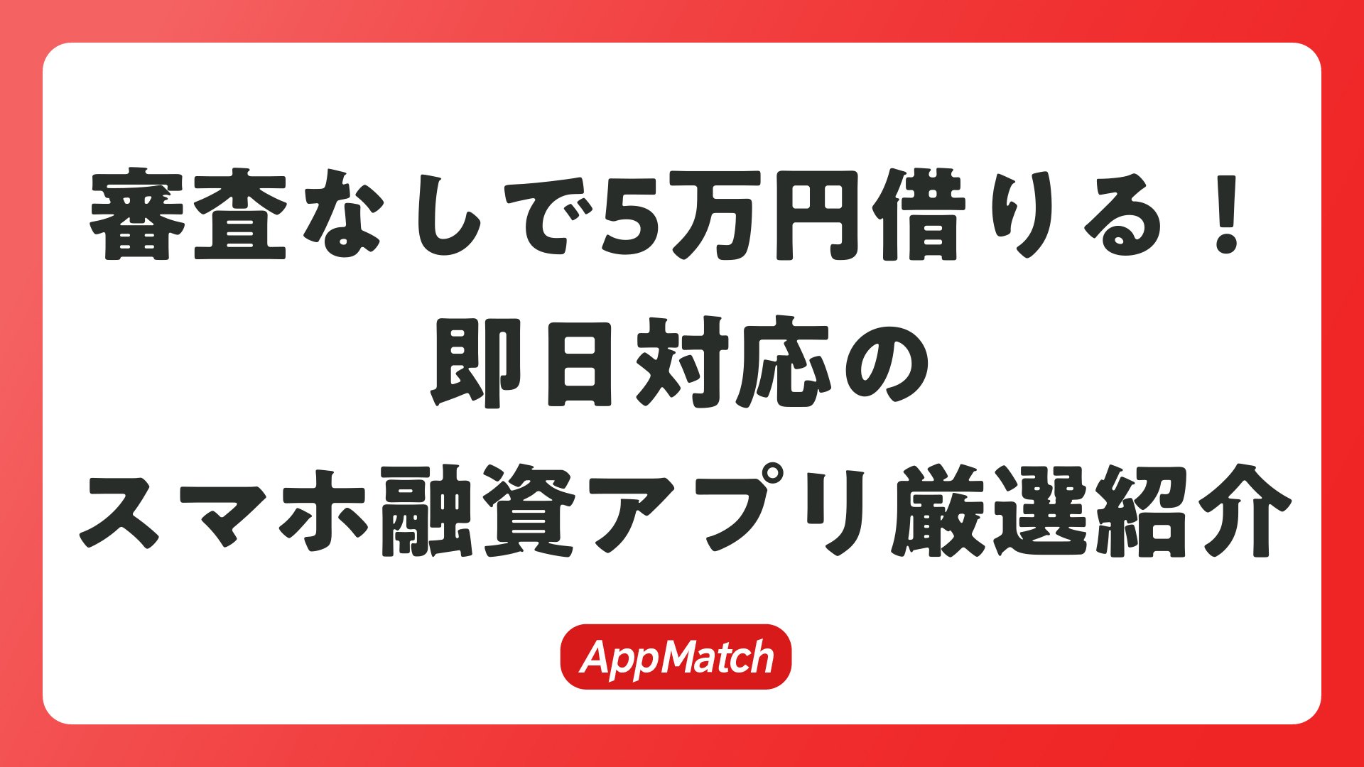 この記事で紹介したアプリを活用すれば、審査なしに近い手軽さで5万円を即工面。アプリ紹介・レビューメディアとして、読者の皆さんが安心して選べる情報を厳選しました。ダウンロードして今すぐ行動を!
