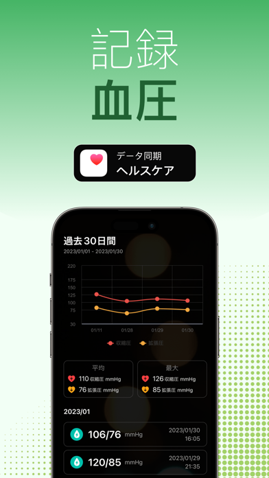 • 測定結果を記録・管理できるので、健康状態の変化がわかる